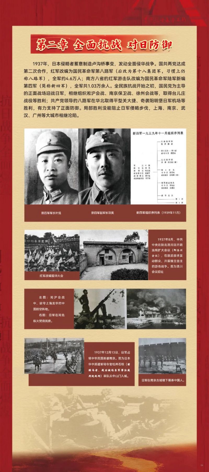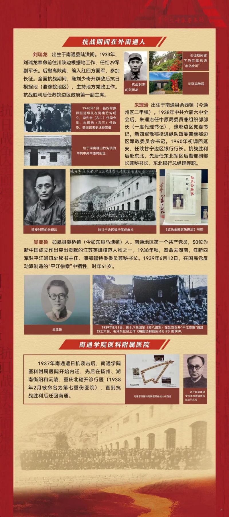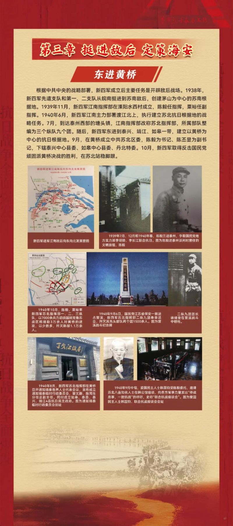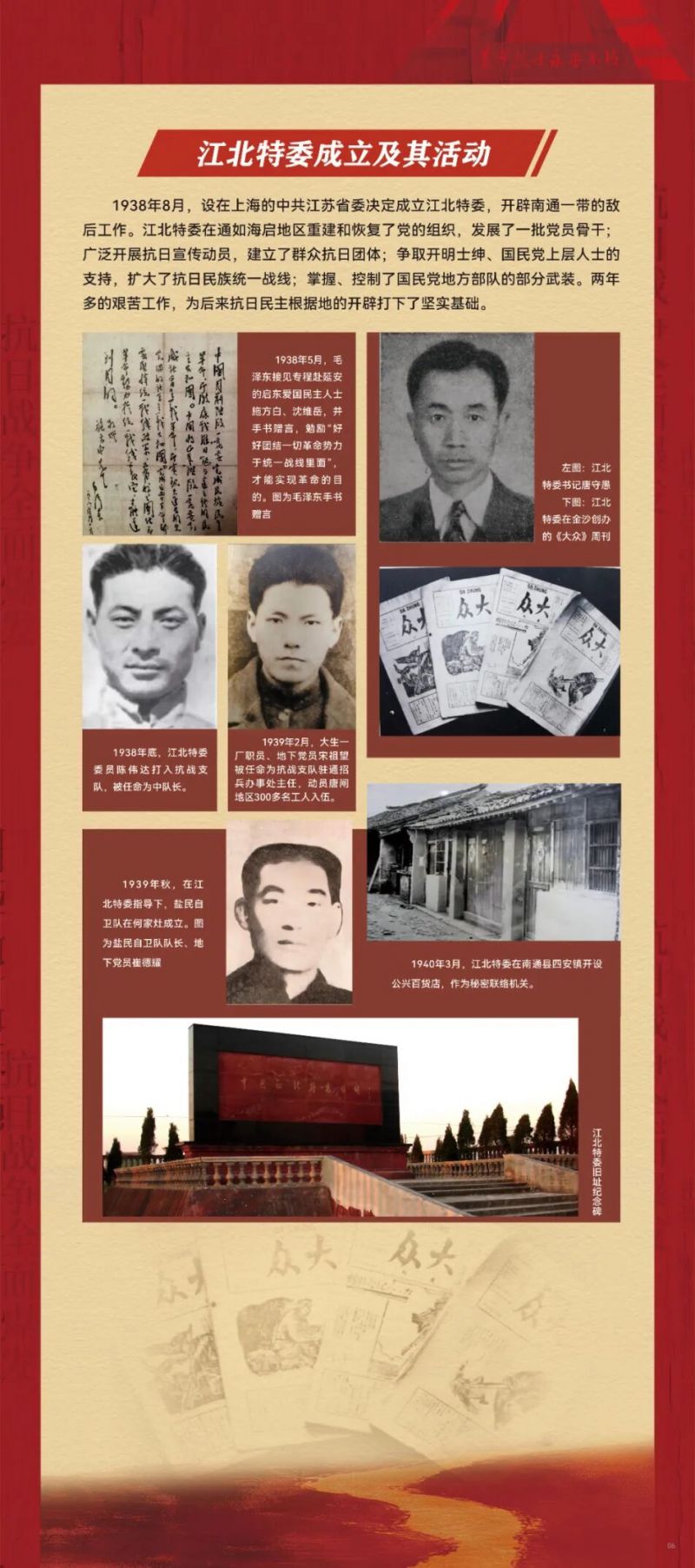 展出内容全景呈现了在中国共产党领导下的新四军与南通人民并肩作战,相继开展反摩擦、反“扫荡”、反“清乡”、反据点斗争,创造了在平原水网地区长期原地坚持斗争的辉煌战果,取得抗日战争的伟大胜利,谱写了一曲壮丽的史诗。